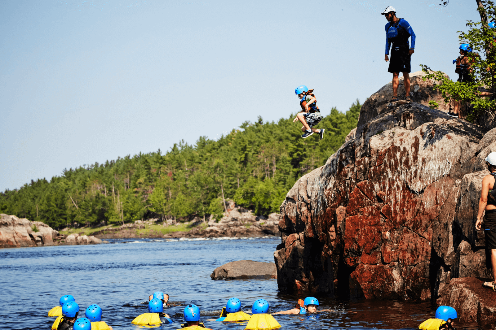 Experience Soft Adventure Whitewater Rafting, a great Canadian river trip – this is a travel-path forged by First Nations, traversed by fur traders since the 1600’s and fostered by foresters at the turn of the last century. An introduction to whitewater is a full day natural roller coaster where you’ll paddle as a team – your experienced guide steers from the stern – all you have to do is listen for directions, join in and have fun. This soft adventure trip descends 8 km of beautiful scenery and tumbling whitewater, interspersed with quiet pools where you get to body surf and float in the friendly warm waters. As the currents calm down, we transfer to the comfort of our signature Pontoon Boat to enjoy a freshly grilled meal. Relax and reenergize while you cruise back to the OWL Resort and take in the beauty of the Canadian Shield. At the resort a video presentation will let you relive your day’s adventure. Here the fun can continue on our sandy beach, where kayaks, canoes and stand-up-paddle boards are in abundance for guest use.